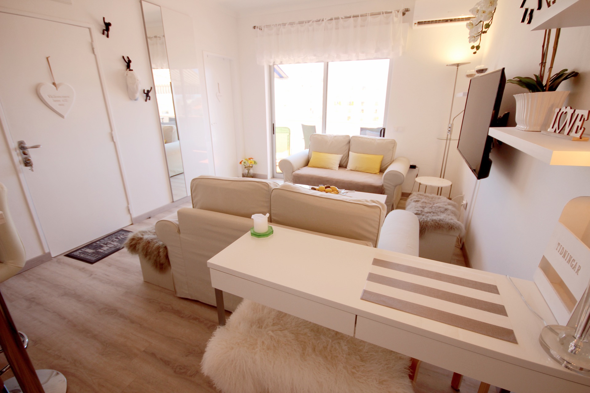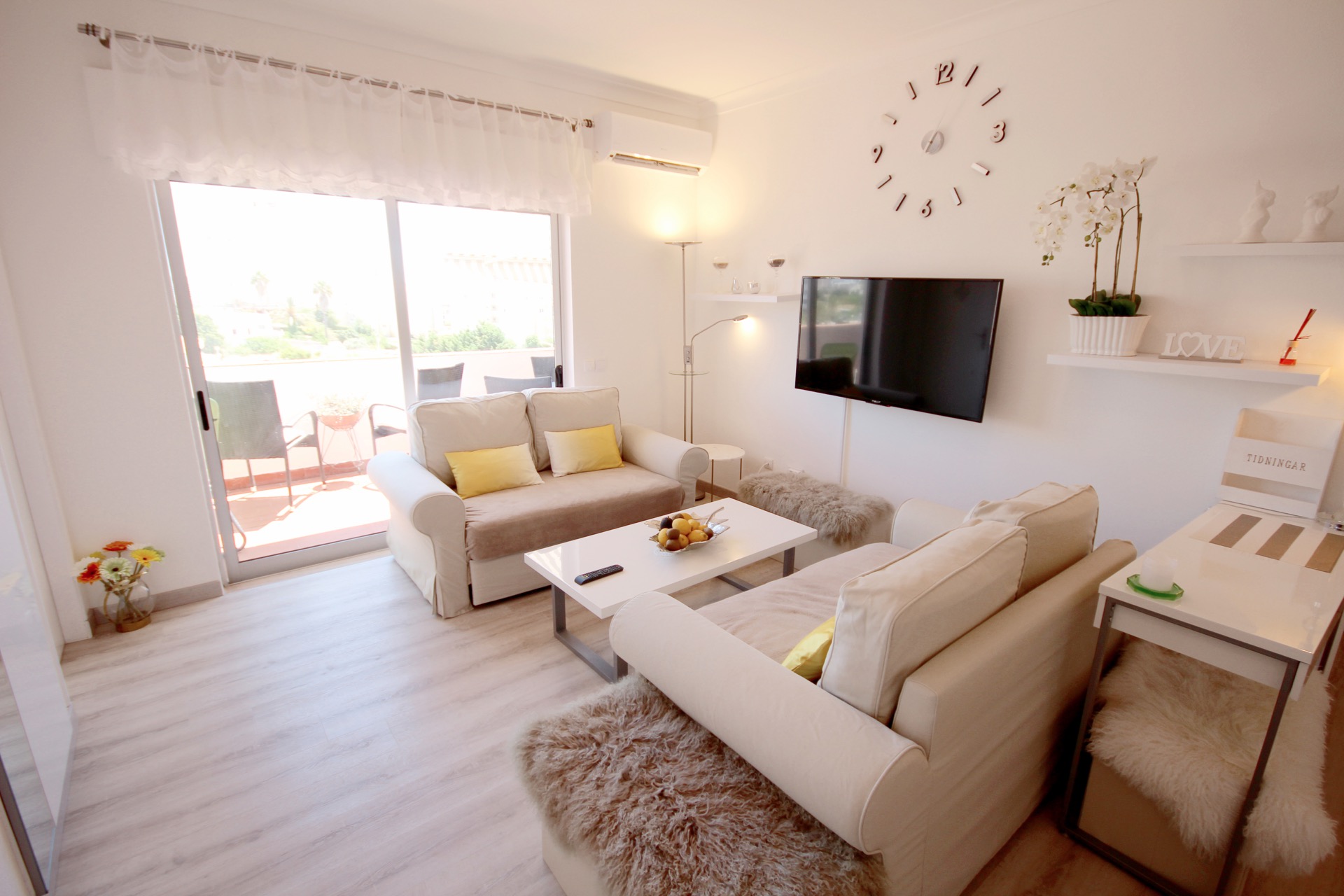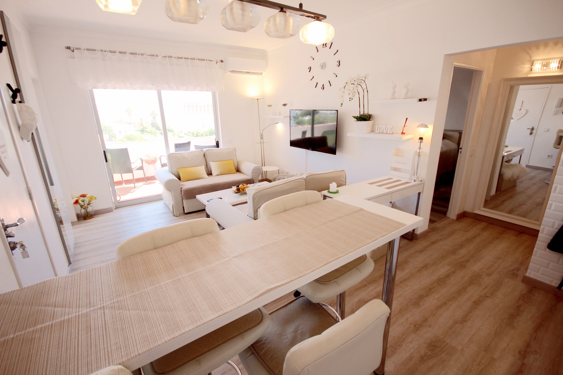 One-bedroom apartment with a double bed, living room with sofa bed and air conditioning, free Wi-Fi, balcony with table and chairs, and a fully equipped kitchen. Sleeps up to four people. The apartment is located in a quiet area with restaurants and shops, close to Praia da Rocha beach.