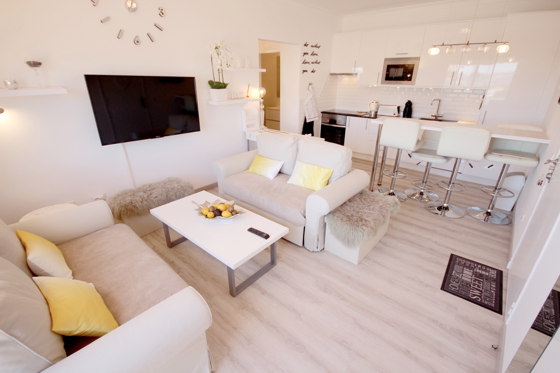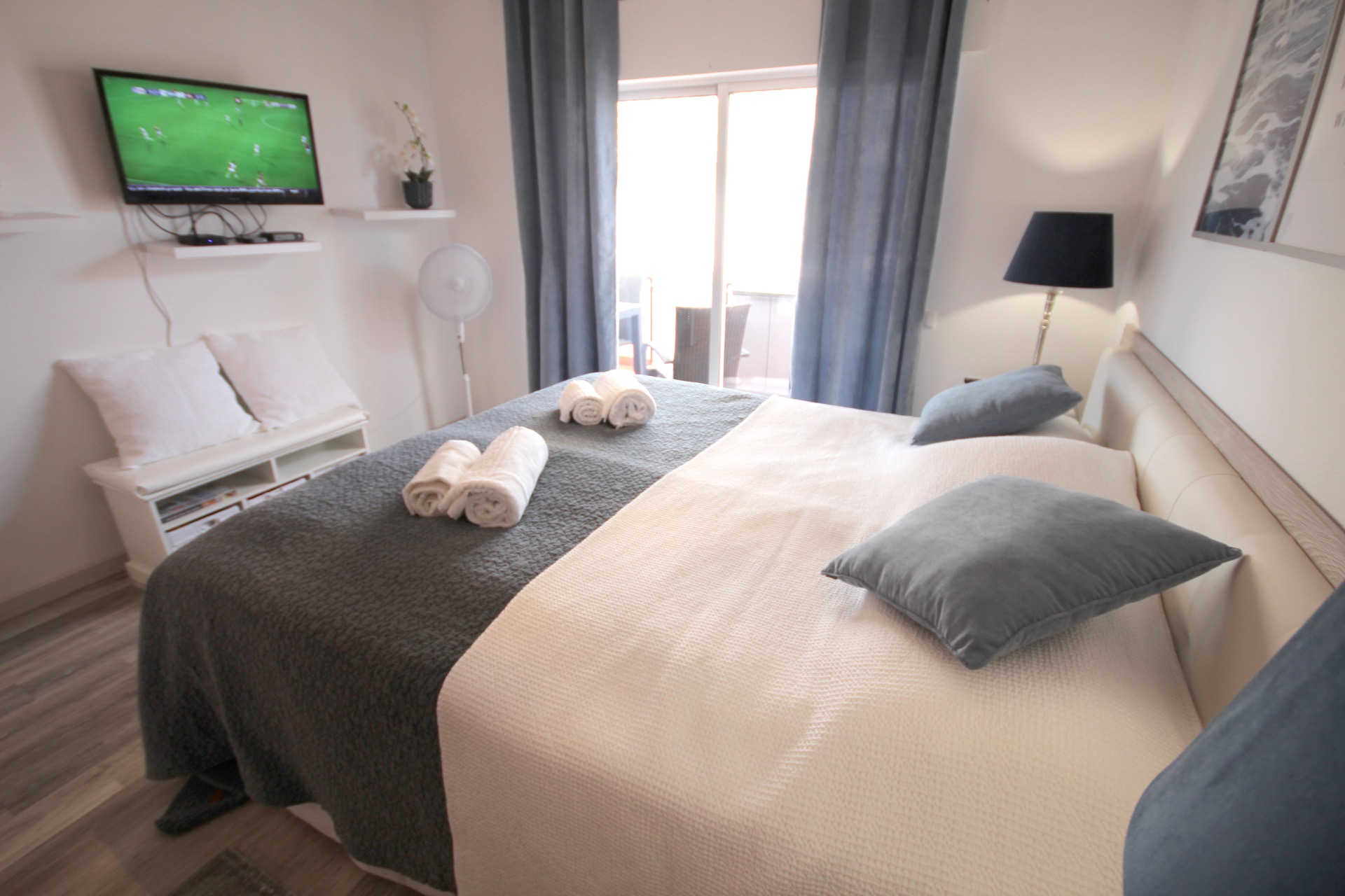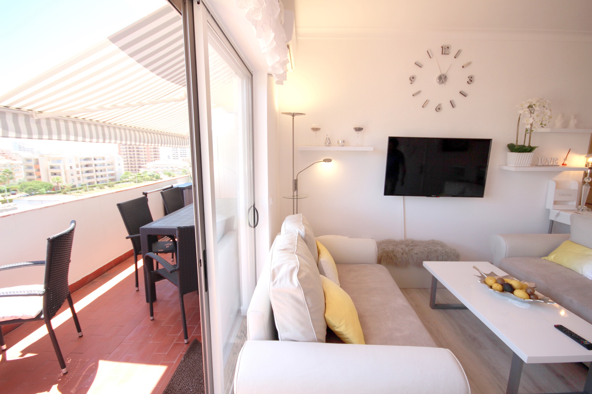 One-bedroom apartment with a double bed, living room with sofa bed and air conditioning, free Wi-Fi, balcony with table and chairs, and a fully equipped kitchen. Sleeps up to four people. The apartment is located in a quiet area with restaurants and shops, close to Praia da Rocha beach.